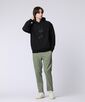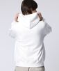 上質な30/6ピマコットン裏毛を贅沢に使用。裏面に太めの6番糸を織り込むことで、しっかりとした肉感のあるタフな仕上がりになっています。生地自体にコシがあるため、着用時にフードがくたっとならず顔周りを立体的に演出します。