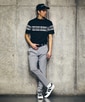 身頃から両袖にかけて大胆に「PSYCHO BUNNY」のロゴをあしらった、スポーティで目を惹くパネルプリントが特徴です。モックネックの襟元には、さりげなくブランドアイコンであるバニーロゴを配置し、絶妙なアクセントを効かせました。存在感抜群のデザインで、この1枚を着るだけでコーディネートの主役になるアイテムです。