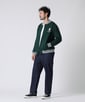 ベーシックカラーを組み合わせた、着回ししやすいコーディネートです。ダークグリーンのスタジャンは、インナーやボトムスを選ばず、様々なスタイルに合わせることができます。