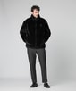 高級感あるブラックのフェイクファーのジャケットを主役にした、シンプルでスタイリッシュなカジュアルスタイル。