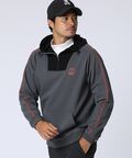 首元の切替がスタイルの印象をつけるハーフジップパーカ。フード部分は布帛になっています。胸元のバニーや腰部分のフォントロゴは立体的なラバーでデザインされており、どこから見られても抜かりないデザインで、あなたのスタイルを一層引き立てます。