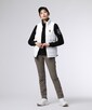 総柄面にはファスナー付きの胸ポケット、無地面には左右にボタン付きのポケットを取り付けているので、どちらの面で使用しても便利な設計に。柄物とコーディネートがしやすい無地面には、左胸と背中上部部分にバニーとフォントロゴのプリントを入れています。