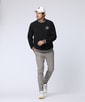 裾にゴムの付いたジョガーパンツシルエットですが、裾のファスナーを開くとストレートタイプに変わる2WAYタイプで、ファスナーのマチには左右で異なるデザイン刺しゅうを施した遊び心溢れる仕様になっています。前左ポケットと右後ろポケット部分に、立体的なロゴをアップリケ。リモコンやポーチを掛けられるブランドネーム入りDカンを取り付けるなど、おしゃれさとプレー時の快適さを追求しました。