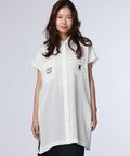 体型を拾いにくいリラックスシルエットが魅力のバンドカラーシャツです。肩のラインを落としたドロップショルダー仕様に加え、袖丈を長めに設計することで、気になる二の腕を自然にカバー。着丈はヒップが隠れる長さで、身幅もゆとりを持たせているため、体のラインを気にせずリラックスして着こなせます。左右の胸ポケットにはアイコニックなブランド刺繍を施し、シンプルな中にアクセントを効かせた、大人のカジュアルスタイルに最適な一枚です。