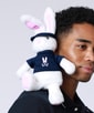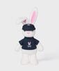 PsychoBunnyの刺しゅうが入ったキャップとTシャツを着たBUNNYのぬいぐるみ。