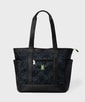 チェーンのように絡み合ったバニーがプリントされた厚⼿のツイル⽣地とレザーライクな合⽪⽣地の組み合わせ。肩掛け可能な⻑さの持ち⼿と収納⼒に優れたトートバッグ。ポケットは外側に4つ、内側に1つと機能性も抜群です。