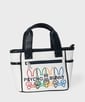 レザーライクなソフト合⽪を使⽤したラウンドバッグ。前⾯のカラフルバニーとロゴ刺繍がPOPでカジュアルな中にも⾼級感を演出。細⾝ながらポケットは外側に4つ、内側に1つと機能性も抜群。