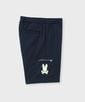 裾にあしらった「PSYCHO BUNNY」のロゴと、サイドポケットのブランドアイコンがアクセントになったスポーティなデザインです。ウエストはゴムとドローコード仕様で、リラックスした穿き心地を実現。右後ろには便利なDカンも備えています。