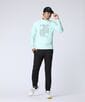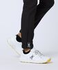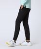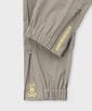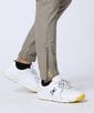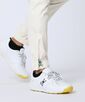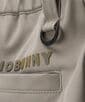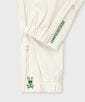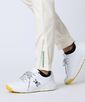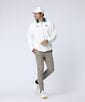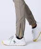 裾にゴムの付いたジョガーパンツシルエットですが、裾のファスナーを開くとストレートタイプに変わる2WAYタイプで、ファスナーのマチには左右で異なるデザイン刺しゅうを施した遊び心溢れる仕様になっています。前左ポケットと右後ろポケット部分に、立体的なロゴをアップリケ。リモコンやポーチを掛けられるブランドネーム入りDカンを取り付けるなど、おしゃれさとプレー時の快適さを追求しました。