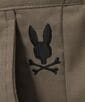 通常のポケット以外に、ボールやティーが入るサブポケットが前後に2つと、後ろは左側にフラップを付け二種類に。また、スイング後などにシャツがパンツからはみ出すことを防ぐ すべり止め をウエスト内部に施しているほか、リモコンやボールポーチを付けるDカンが取り付けられ、機能性の高さが魅力です。一見シンプルなデザインながら、ロゴは全て刺しゅうで施すなど、こだわりが詰まった一本です。