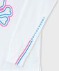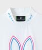 フロントの左袖カフスまで続くネオンカラーのラインモチーフや、ネック部分のPSYCHO BUNNYの文字が目を惹くデザイン。