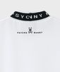 胸のラウンドバニーロゴのプリントはタートルネック部分のフライスに合わせてシンプルなモノトーンカラーに仕上げています。