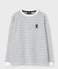 T/C(=ポリエステル×コットン糸)素材のミニケーブル編みのボーダーに、立体的なケーブルのディテールが加わった、唯一無二のユニークな素材です。
