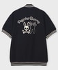 フロントは着脱が容易なスナップボタン仕様。左胸にはワンポイント、背面にはブランドアイコンであるバニーロゴとレタード刺繍を大胆に施し、バックスタイルも際立つデザインに仕上げています。襟や袖口のラインリブが全体を引き締め、大人のカジュアルスタイルにアクセントを加えます。