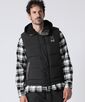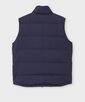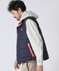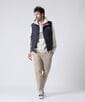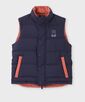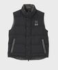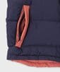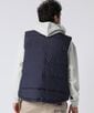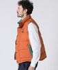 表裏や、ポケット部分がバイカラーになったワンポイントロゴのダウンベスト。