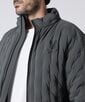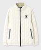 表側と裏側で異なる生地を同時に織り上げた、接結ストレッチ素材を採用したダウンブルゾン。
