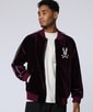 ベロア生地に背中に大きく描かれたグラフィック刺繍が特徴のスカジャン。アメリカの老舗ブランドSKOOKUMとのコラボ商品です。