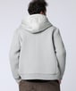 前身頃の布帛は緻密に織り上げたタフタ生地に、H2FF®加工を施すことで、軽量性を保ちながら、強力な耐久はっ水性、防汚性を両立させた生地を使用しています。シャープなハリ感とマットな質感が特徴で、悪天候下でも快適さと動きやすさをサポート。ニットはポリエステル素材を使用しています。