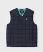 TAIONの定番ベーシックVネックインナーダウンベストをベースに、Psycho Bunnyらしい遊び心をプラスしたコラボアイテム。