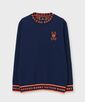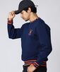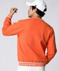 ジャガードで胸のワンポイントロゴ、衿、袖、裾のフォントを表現しており、バックにはポイントで刺繍が入っています。
