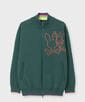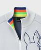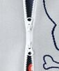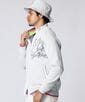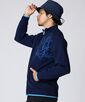 衿裏、袖リブ裾の配色と、後ろの刺繍のカラフルな配色がアクセント。