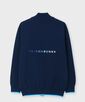 リサイクルポリエステル糸で編まれた14ゲージのスタンドカラージップニット。