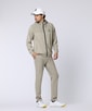 ブランドオリジナルのシルエットBUNNYを、プリントではなくジャカード織りで表現したジップアップフーディーです。総柄デザインでありながら、織り柄ならではの陰影と奥行きによって派手になりすぎず、大人のゴルフスタイルに相応しい上品なルックスに仕上げました。胸元にはネオンカラーのシルエットバニーをプリントし、トレンド感のあるスポーティーなアクセントを加えています。また、身頃の切り替え部分とフードは布帛(ふはく)とカットソー生地を合わせた、2枚仕立てを採用。これによりフードの立ち上がりや全体のシルエットが立体的に保たれ、着用時のフォルムが美しく際立ちます。