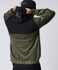 スイング時に擦れが起き易い内袖とフードと背の一部分に別布を重ね付けしてデザイン性と機能性を向上させました。