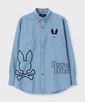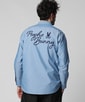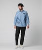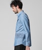 コットン・ポリエステル交織ダンガリーワッシャーを使用したカジュアルシャツ。