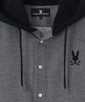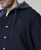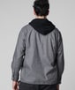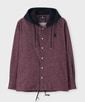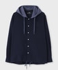 シャツとしてもアウターとしても合わせられる、トレンドのフード付きネルシャツの無地バージョンです。