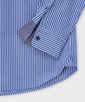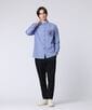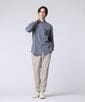 ロンドンストライプ柄の生地に、微起毛加工(ピーチスキン加工)を施しました。コットンならではの通気性は保ちつつ、表面をわずかに起毛させることで、温かみのある柔らかな肌触りを実現しています。季節の変わり目からロングシーズン快適に着用いただける素材感です。
