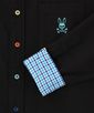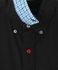 定番のマルチカラーボタンと、襟裏とカフス裏にチェックの別布を使用し、アーカイブの要素をミックスさせたデザインです。