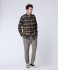カジュアルで温かみのある印象を与える10/1スラブチェックの起毛感のある生地を使用しています。糸の太さが不均一なスラブ糸を使用したことで独特な表面が単調にならず、表情豊かな仕上がりに。