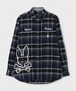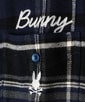 秋冬らしい起毛感のある生地に大きくバニーのシルエットが入ったチェックシャツ。胸元には「Psycho Bunny」のフォントロゴを、前身頃の右側にはバニーのシルエットをどちらもチェーン刺しゅうで仕上げた贅沢なデザイン。丈夫な生地なので経年劣化を楽しむことができ、自分だけの特別な一枚に。長くご愛用いただけるシャツです。