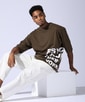単色のシンプルなフォントを使用し、サイドにプリントすることで派手過ぎずコーディネートの程よいアクセントになるようなバランスに仕上げています。