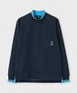 胸の刺繍と衿リブのカラーを揃えているのがポイント。