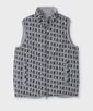 ロゴとシルエットロゴがMIXされた本国の総柄を用いたベスト。