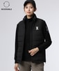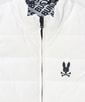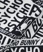 総柄面にはファスナー付きの胸ポケット、無地面には左右にボタン付きのポケットを取り付けているので、どちらの面で使用しても便利な設計に。柄物とコーディネートがしやすい無地面には、左胸と背中上部部分にバニーとフォントロゴのプリントを入れています。